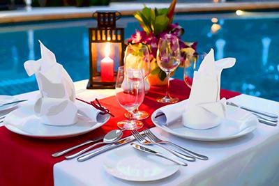 Candlelight, music, dinner and beverages ... a perfect date for couples to share a romantic evening by the pool. Whether you celebrate Cupid before or after February 14, create a heartfelt night for one couple or many … and don’t forget to enjoy the midnight swim – a perfect end to a perfect pool date!